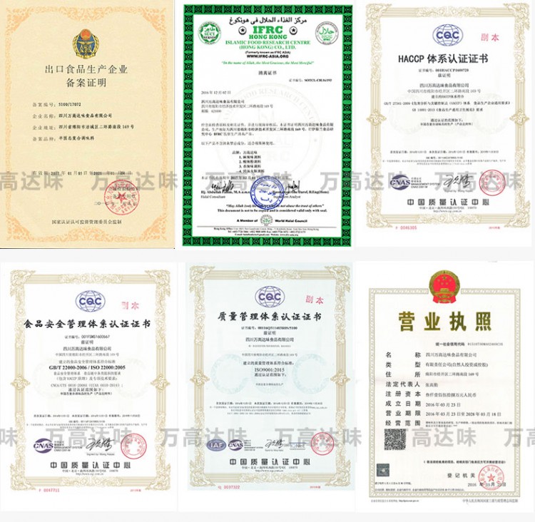 主要經營:公司擁有調味品、方便食品、肉制品、蔬菜制品的生產資質。主要產品覆蓋火鍋底料、辣椒紅油、干鍋香鍋底料、面食調料、粉類調料等標準化小調料包,以及酸辣粉、綿陽米粉、新疆炒米粉、自熱火鍋等方便食品的研發與定制。