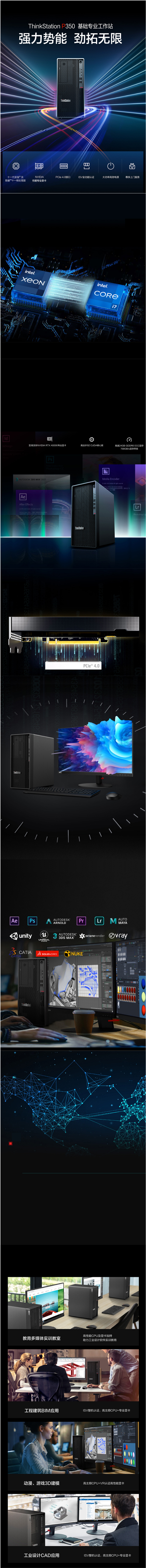 詳細信息 彭州聯想工作站總代理 成都Lenovo/聯想專業圖形工作站代理商 聯想ThinkStation工作站經銷商 ThinkStation P350十一代至強 及酷睿tm 處理器,強悍性能勁享高效創造力系統性能全新升級,支持十一代英特爾 至強 及酷睿 處理器 ,支持8核16線程,睿頻5.3GHz,通過頻率、內核和線程的平衡,打造無與倫比的性能利器 ,體驗極速強勁的處理能力。