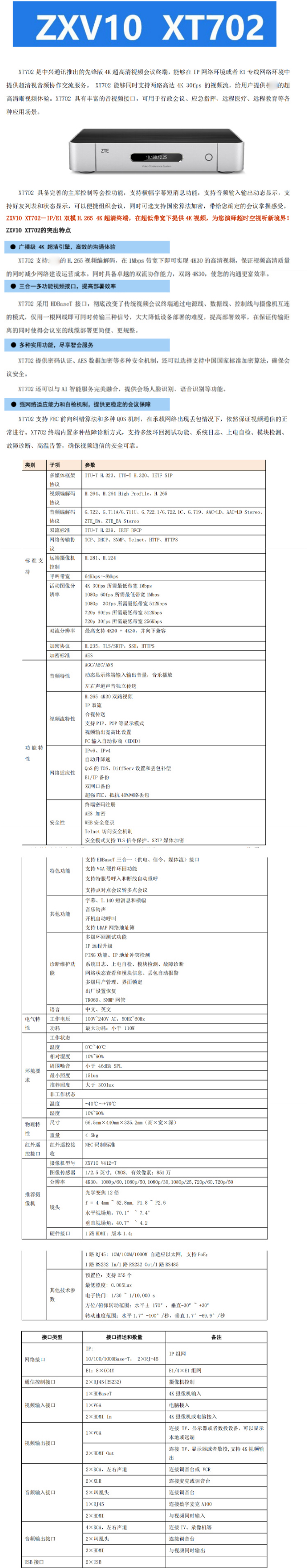 宜賓中興視頻會(huì)議代理商 中興(ZTE) ZXV10 XT702 ZUX-E XT802 ZUX-E 高清視頻會(huì)議終端XT702 ZUX-E(支持IP/E1兩種組網(wǎng)方式)