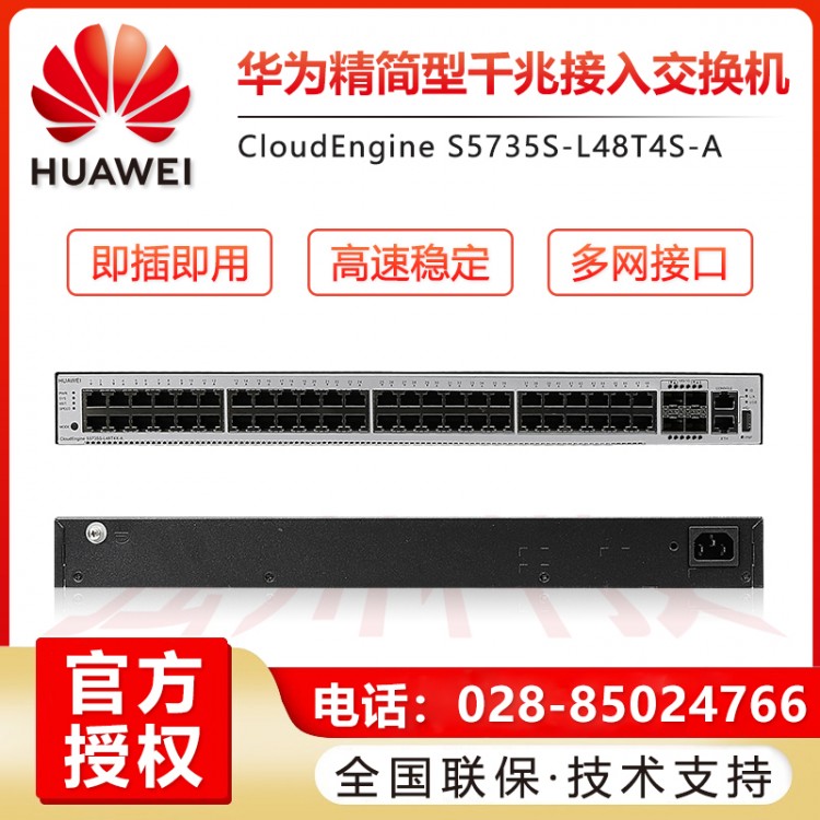 四川成都華為交換機總代理 華為企業級交換機經銷商  華為核心交換機代理商 綿陽華為交換機總代理 南充華為交換機代理商 華為HUAWEI企業級交換機S5735S-L48T4S-A 48口全千兆以太網+4千兆光口網絡云管理網管核心交換機代理商