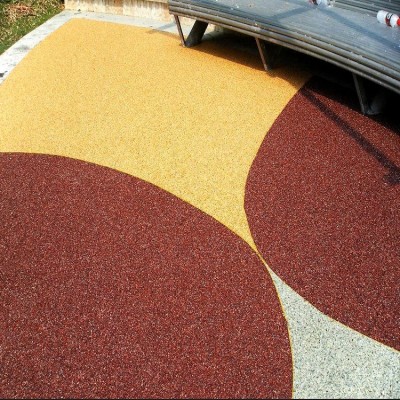 作為一種新的環保型、生態型的道路材料,該種透水路面面板鋪裝厚度根據巖性以及采用單粒徑巖石粒徑決定,一般厚度范圍在4~7cm。基層結構可以采用半剛性基層或者是級配碎石、級配礫石透水基層,具有良好的透水性,是由聚氨酯膠粘劑與單級配或間斷級配骨料按一定配合比拌合而成的新型路面材料。目前該種材料主要用于鋪裝景觀道路等輕交通路面。
