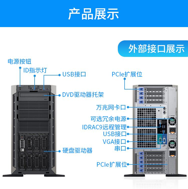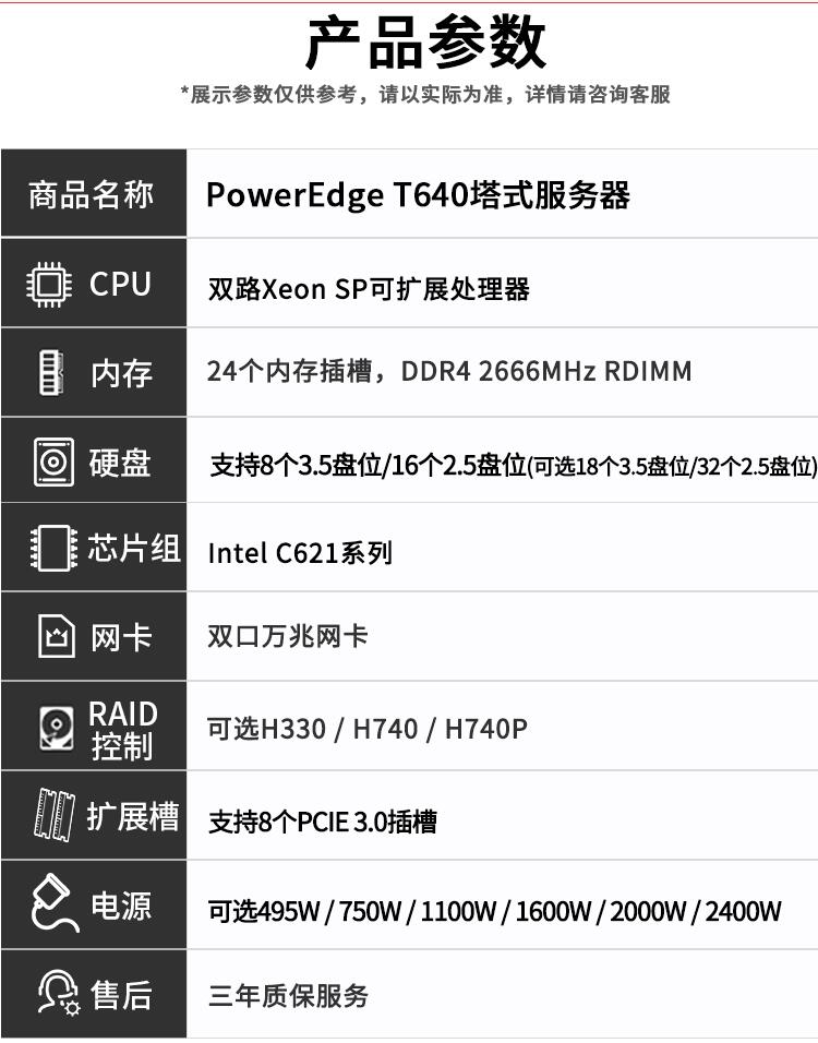 戴爾(DELL)PowerEdge T640 塔式服務器主機大容量存儲電腦整機 T640 1*銅牌3206R 8核 750W 16G內存丨3*2T SAS 丨H330 |