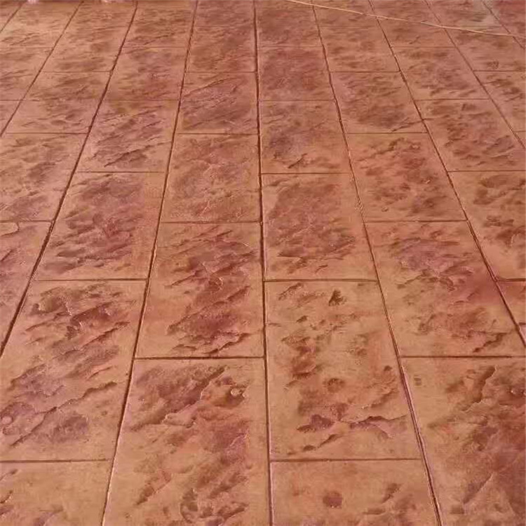5、使用藝術(shù)地坪模具對(duì)地坪面層進(jìn)行紋理處理。藝術(shù)地坪模具應(yīng)配套使用,首先確定好紋理的分布方向,選好一塊模具放置的位置和角度,然后其它的模具依次緊貼一塊模具放置。彩色混凝土藝術(shù)地坪壓模采用壓模,壓模應(yīng)由技術(shù)較好的人員進(jìn)行作業(yè)以保證壓紋深度一致和模具放置的準(zhǔn)確性。