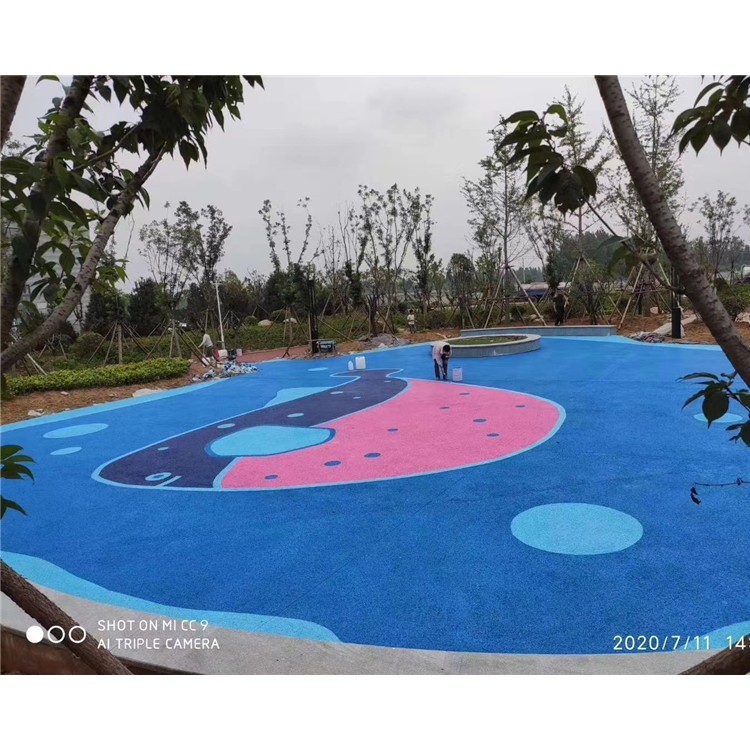 7、理論上對藝術地坪封閉2-3天后進行沖洗,正常情況下為了防止新造路面被污染,工程全部紋理壓印完成后統一進行沖洗。沖洗時不必將脫模粉全部沖洗干凈,應留有10%左右的脫模粉顏色,這樣的藝術地面就會有效果很好的漸變效果。